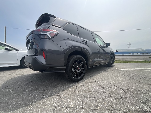 試乗車としてご用意しております、SPORT EX にSTIのブラックホイールSTIのエアロを取り付けてみました~~