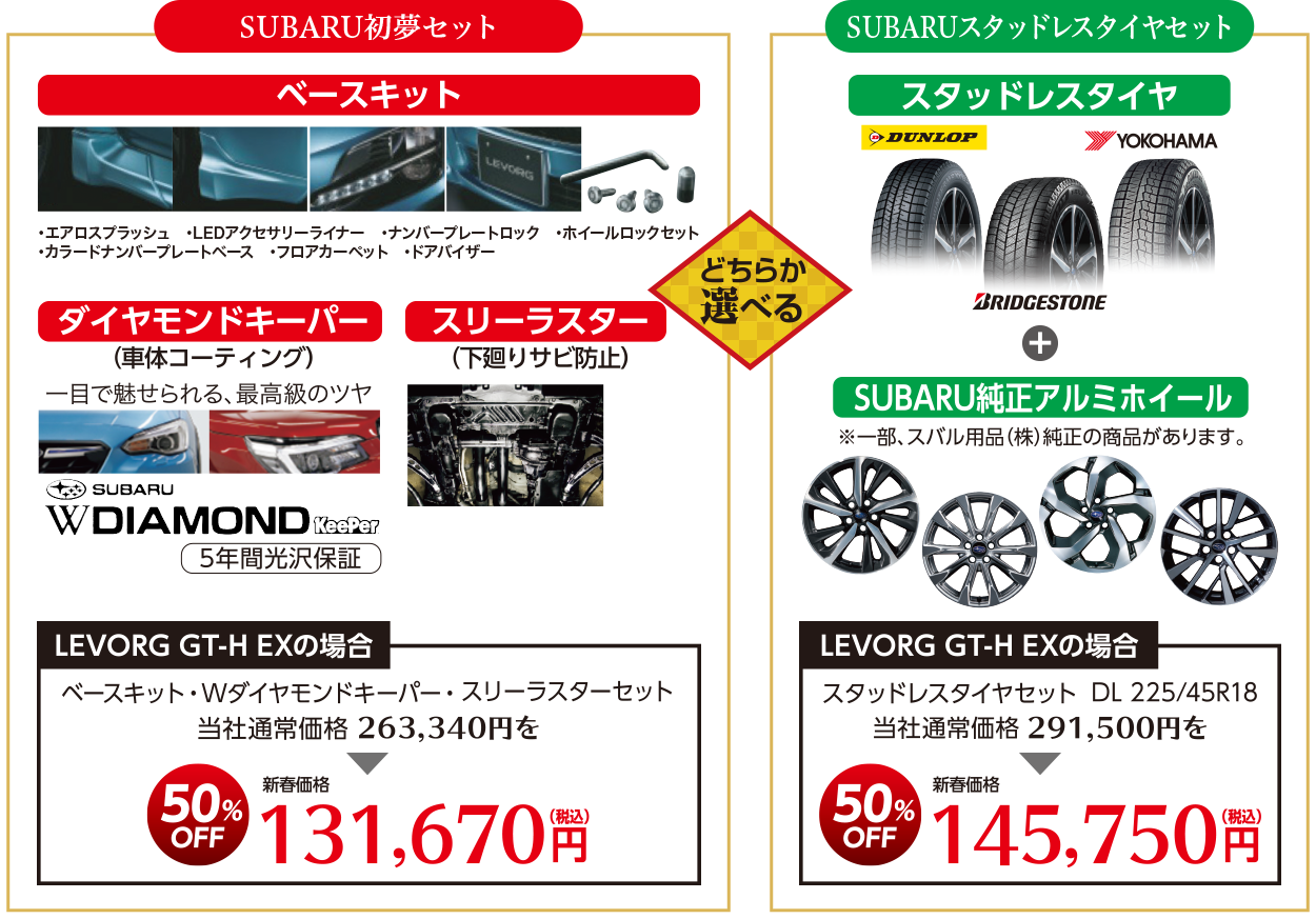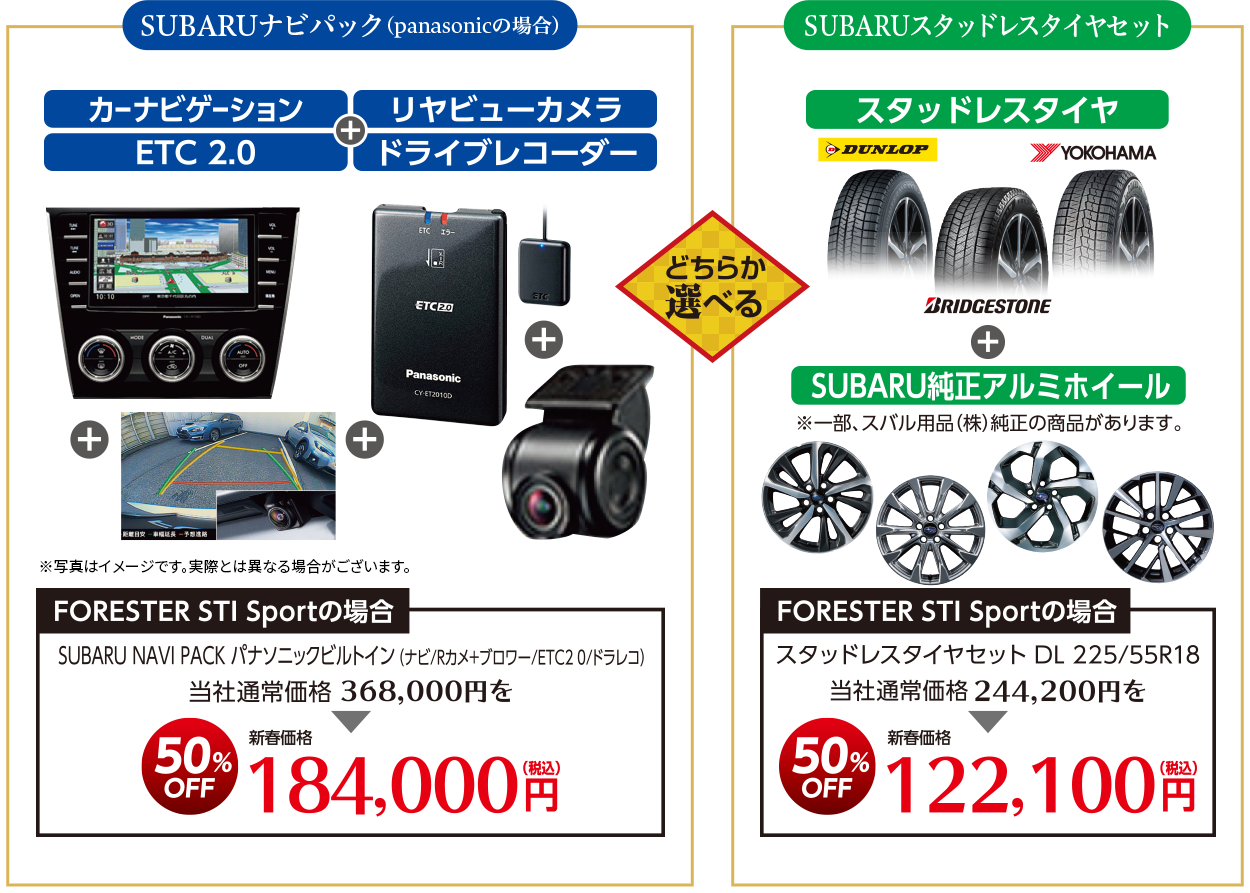※SUBARUナビパック、SUBARUスタッドレスタイヤセットはその他のメーカーも取り扱っております。価格は車種・メーカーによって異なります。