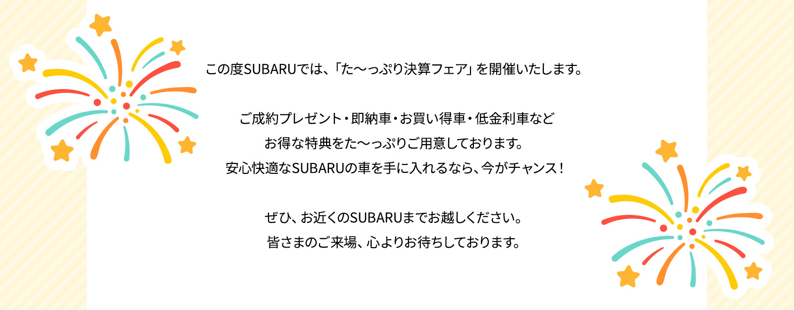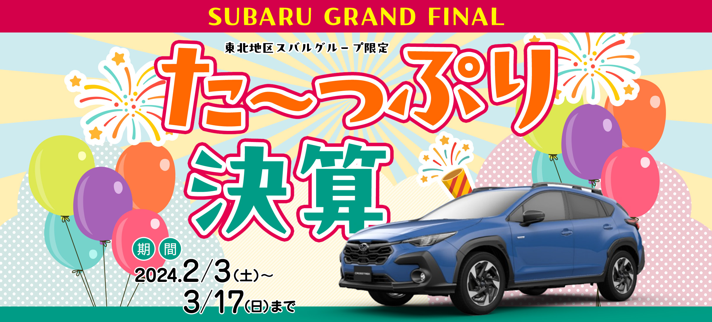 ●本キャンペーンは〔東北地区スバルグループ〕による提供です。 期間中(2024年2月3日〜3月17日)にご成約いただき、2024年3月31日までにご納車させていただいたお客様が対象となります。ただし、当社指定在庫車以外のお車で2024年3月31日までにご納車させていただいたお客様も対象となります。●当社指定在庫車(レヴォーグ、レイバック、フォレスター、クロストレック、アウトバック、インプレッサ)本キャンペーンは予告なく終了する場合がございます。ご了承下さい。詳しくは店舗スタッフまでお問い合わせください。●株式会社 SUBARU 及び SUBARU 販売店の関係者は本キャンペーンの適用対象外となります。●付与されるブランドと商品数はポイント数によって異なります。●本キャンペーンについてのお問い合わせはAmazonではお受けしておりません。 東北地区スバルグループキャンペーン事務局【toukatsu-hansoku@miyagi-subaru.co.jp】までお願いいたします。 ●Amazon、Amazon.co.jpおよびそれらのロゴはAmazon.com, Inc.またはその関連会社の商標です。●「au PAY」は、KDDI株式会社の商標です。